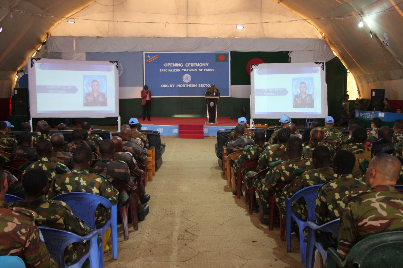 Le 29 septembre 2025, au camp militaire de Ndoromo à Bunia, la MONUSCO a lancé une nouvelle session de formation pour 120 militaires des Forces armées de la RDC. Cette formation, assurée par des instructeurs internationaux venus d’Indonésie, du Népal, du Bangladesh et du Maroc, porte sur des compétences variées : télécommunications, GPS, drones, premiers secours, conduite de poids lourds et techniques de tir.